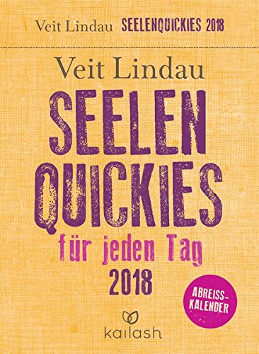 SeelenQuickies jn Tag Untertitel Abreikaler 2018 Autor Veit Lindau EAN 9783424631487 ISBN 9783424631487 Format Abreisskaler Tageskaler Herausgeber KailashSphinx Genre Kaler Anzahl Seiten 368 Gewicht 448g Gre H153mm x B111mm x T38mm Verffentlichung 24052017 Jahr 2017 Land DE